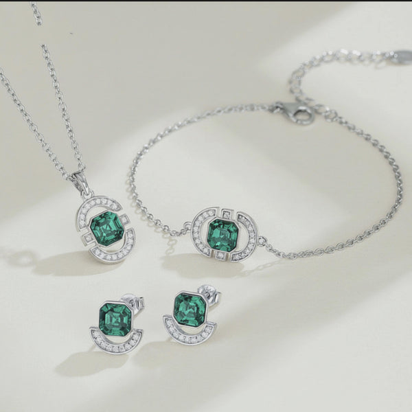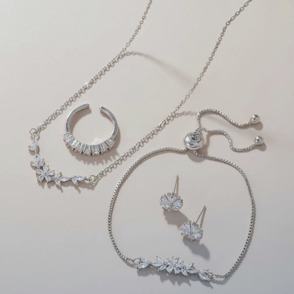 KAVİO 925 Silver Necklace Earring Bracelet Three Piece Set